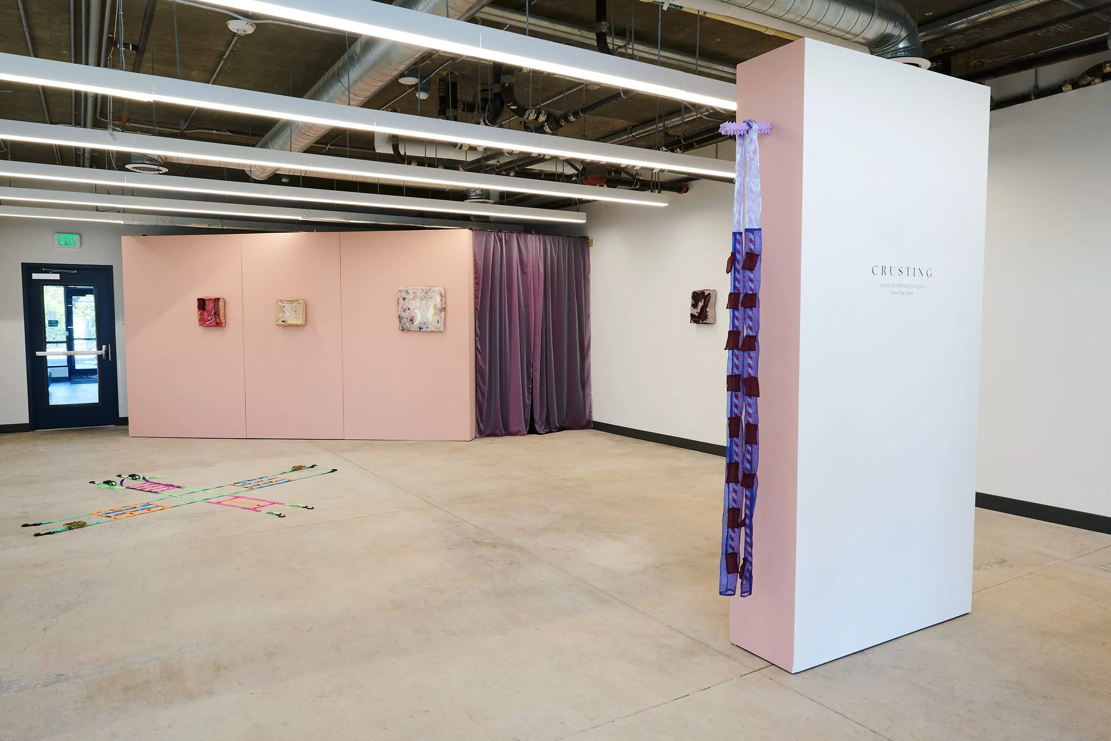 Installation view. Lauren Goldenberg Longoria & Cara Rae Joven, CRUSTING, 2025. DMST Atelier presented by after hours gallery, Los Angeles, CA.